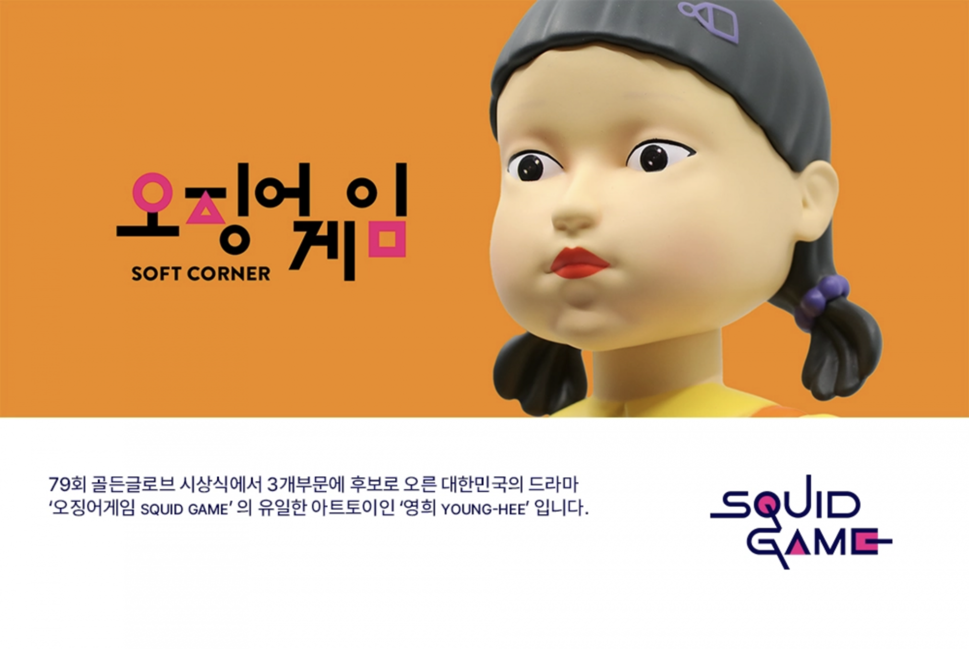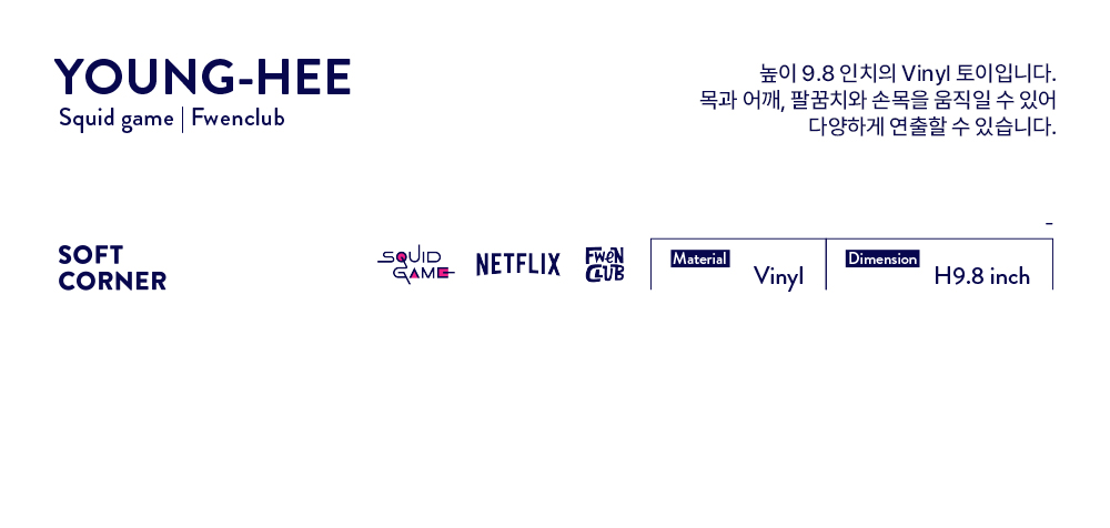 '오징어 게임' 영희 캐릭터의 첫 넷플릭스의 공식 굿즈로 제작된 Vinyl 토이가 한국 국내에서는 소프트코너를 통해 독점 수입 판매됩니다.